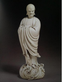 左为白釉何朝宗款渡海观音像,右为白釉何朝宗款渡江达摩像。(德化县融媒体中心供图)