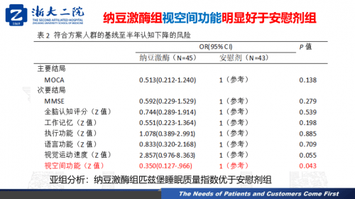 ▲ 浙大二院PPT内容“NSKSD纳豆激酶组视空间功能明显好于安慰剂组”