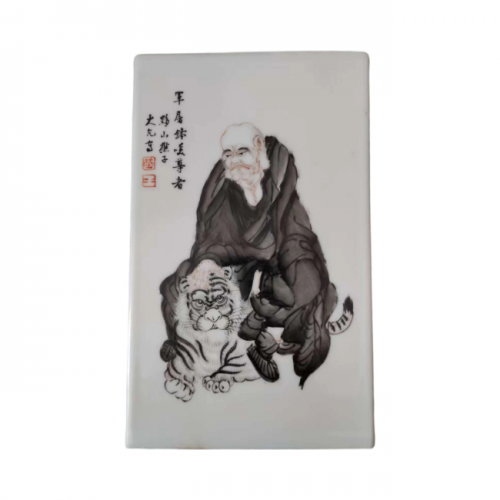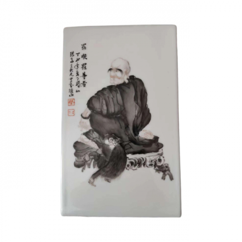 墨彩罗汉图四方镶器:王大凡瓷绘艺术的传世珍罕之作