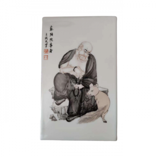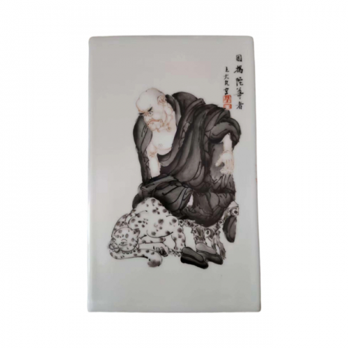 墨彩罗汉图四方镶器:王大凡瓷绘艺术的传世